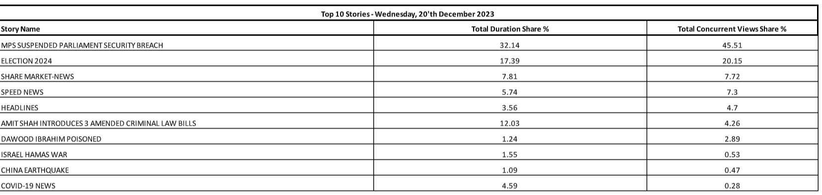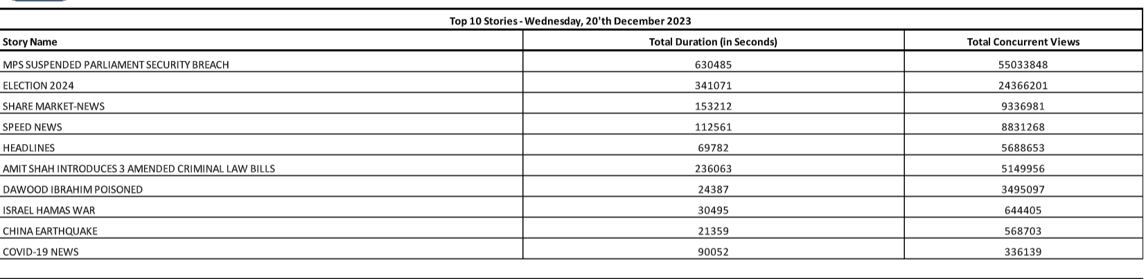 The total Story Duration or the Average Concurrent Views will not add up to 100 pc because the table above includes only the top 10 stories and not the entire universe of stories.