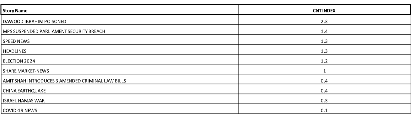 As per Chrome Digital Track (CNT), below are the biggest stories across the Hindi News Genre that went on air yesterday, by Duration and CNT Index.