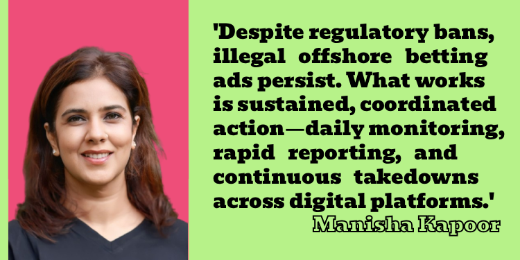 What has proven effective is coordinated and sustained action, combining proactive monitoring of digital platforms, rapid reporting of violations to statutory regulators and ongoing, often daily, takedowns. In this context, ASCI continues to play an important role in supporting government action and ensuring vigilance in the betting and gambling advertising ecosystem.