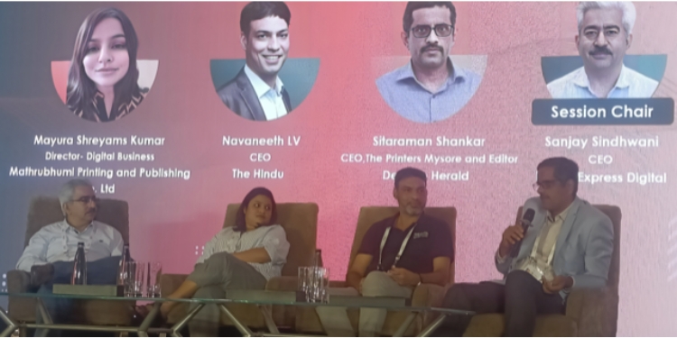 The inaugural edition of The Internet and Mobile Association of India (IAMAI)-Digital Deccan Conclave on June 11th in Chennai witnessed a panel discussion on “Digital Publishing in India – Challenges and Opportunities.” The panel was moderated by Sanjay Sindhwani, CEO of Indian Express Online Media Services. The panellists included Mayura Shreyams Kumar, Director – Digital Business at Mathrubhumi Group, LV Navneeth, CEO of The Hindu Group, and Sitaraman Shankar, Editor of Deccan Herald & CEO of The Printers Mysore.