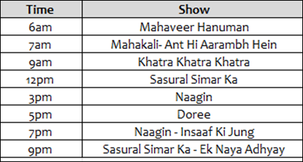 - Sasural Simar Ka – Ek Naya Adhyay – Starring Radhika Muthukumar and Avinash Mukherjee.