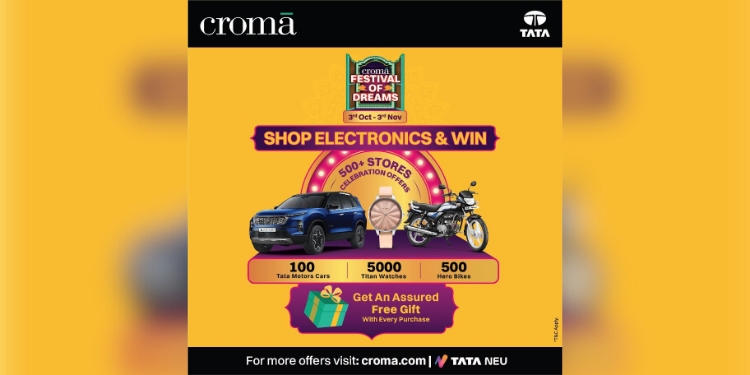 MUMBAI: Croma, is back with its annual ‘Festival of Dreams’ campaign, offering customers an opportunity to upgrade their electronics and home appliances. Shoppers can enjoy offers across all Croma stores and on www.croma.com until 3rd November. Customers stand a chance to win 100 Tata Motors Cars, 500 Hero Bikes, and 5,000 Titan Watches by shopping across over 500 Croma stores and get assured free gifts with every purchase.