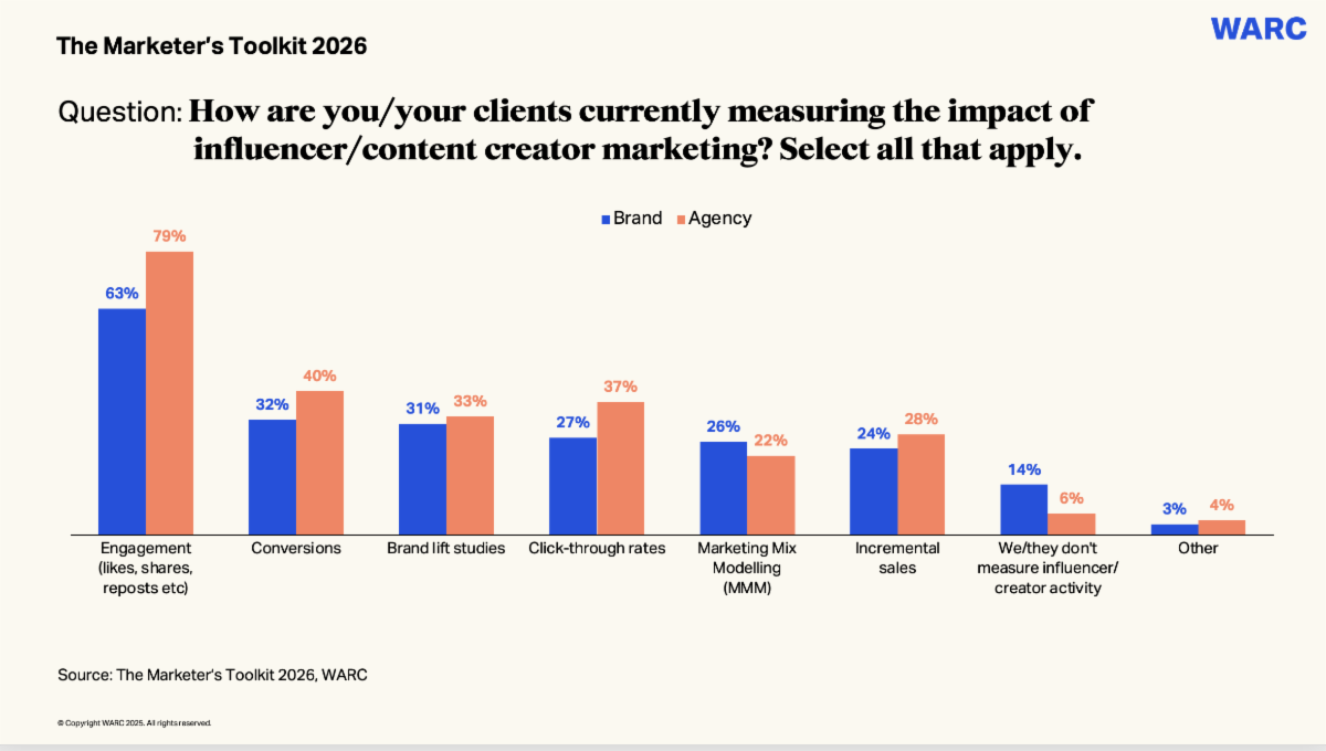 Brands see influencers and creators as vital in helping them to achieve their goals, but they face challenges in demonstrating their effectiveness within their marketing investments. CreativeX analysis shows 45% of creator ad spend on Meta is wasted through poor creative practices, while Kantar research finds just 27% of creator content effectively links to sponsoring brands. The tension between reach, control and authenticity is likely to come to a head in 2026.