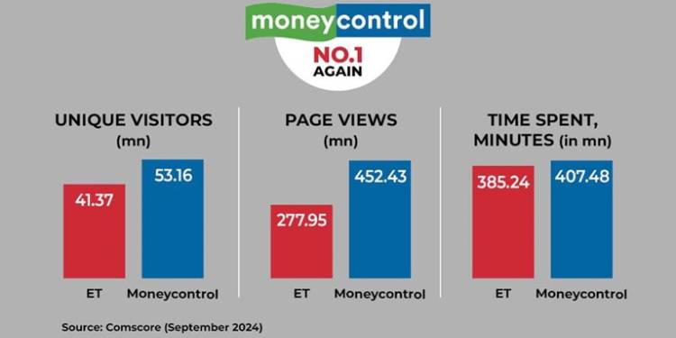 New Delhi: Moneycontrol has strengthened its leadership position as India’s No. 1 destination for business, markets and finance news, again surpassing The Economic Times (ET), according to Comscore’s viewership data for September.