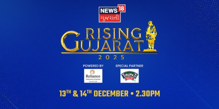 Rising Gujarat 2025, presented by News18 Gujarati, offers a comprehensive and inspiring portrayal of the state’s transformative journey and its forward-looking aspirations. Tune in to watch the telecast on 13th and 14th December at 2:30 PM on News18 Gujarati. Rising Gujarat 2025 is powered by Reliance Industries Ltd., with special partner Tirupati Edible Oils Ltd.