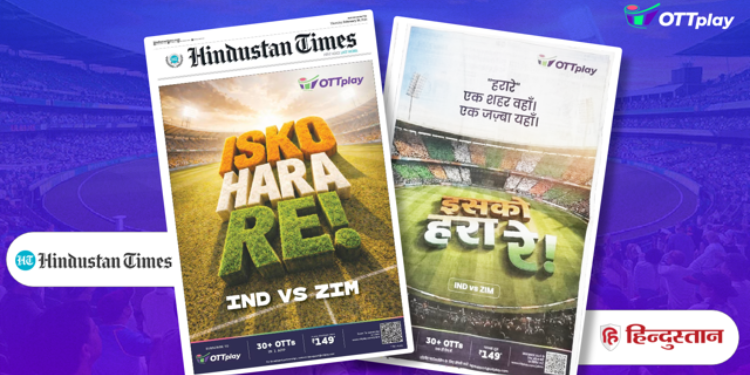 New Delhi: As cricket fever builds ahead of the much-anticipated India vs Zimbabwe T20 clash, OTTplay has unveiled an innovative print campaign titled “ISKO HARA RE!”, turning match-day anticipation into a bold front-page fan anthem. Known for its sharp moment-marketing approach, OTTplay is stepping beyond conventional advertising to become an active participant in the national cricket conversation.