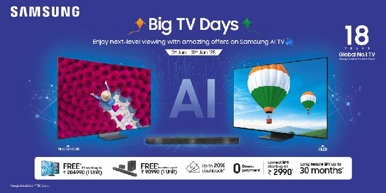 “At Samsung, we are redefining home entertainment with our ‘Big TV Days’ campaign, offering unmatched deals on our premium AI-powered TVs. Designed to deliver stunning visuals, immersive sound, and smart connectivity, these televisions transform living spaces into cinematic hubs. Samsung televisions take the style quotient several notches higher while providing complete security enabled by Samsung Knox. We are excited to bring next-level viewing experiences to consumers across India with added benefits in the New Year,” said Viplesh Dang, Senior Director, Visual Display Business, Samsung India.