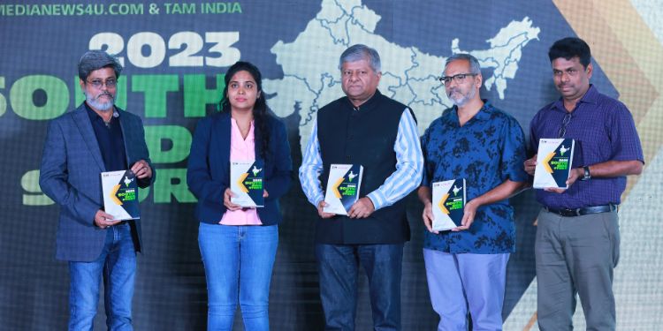 While TV ad volumes remained constant in the four South Indian language markets in 2022 over 2021, the estimated ad spend on the medium grew 19 per cent to Rs.12,750 cr or 46 pc of the total of Rs.27,570 cr, according to the fifth edition of Medianews4u.com’s South Side Story report in partnership with TAM Media Research, unveiled in Chennai on 31st May 2023.