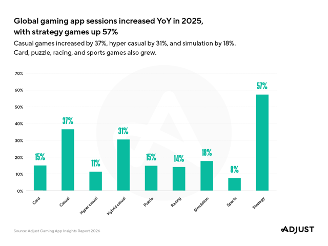 Strategy games jump 57% YoY, while casual and hyper casual climb 37% and 31%
