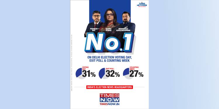 Mumbai: As the battle for 2025 Delhi Assembly Elections unfolded, Times Now, India’s leading English news channel, emerged as the undisputed leader. During Counting Week, the channel led with a 27% market share (Source: BARC| Megacities| NCCS A 22+ Males| Wk.6 2024), reaffirming its stature as the Election News Headquarters.