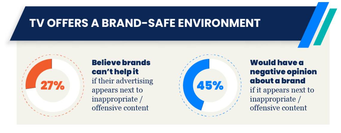 73% of audiences believe it is a brand’s responsibility to control where their advertising appears while 45% will have a negative opinion of the brand if it appears next to inappropriate or offensive content. The Consumer Eye survey from GroupM focusing on ‘Advertising on TV’ concluded that TV is still one of the safest environments that allow for brands to be seen next to premium, high quality content.