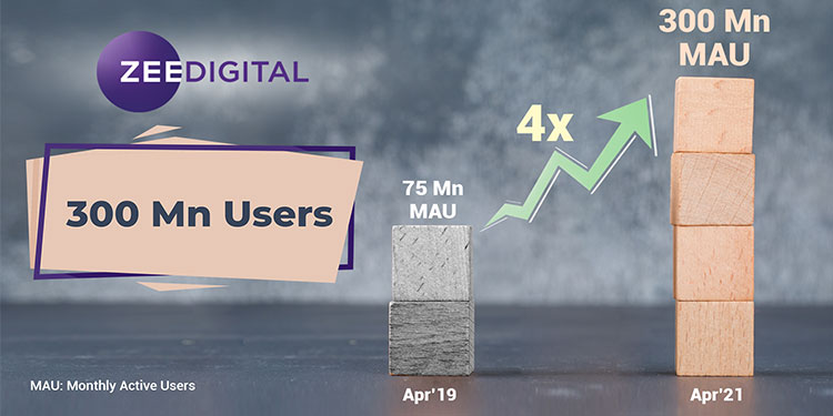 Mumbai: The digital arm of Zee Group, Zee Digital continues to reach new landmarks and strengthen its presence in the digital world crossing the 300 million MAUs (Monthly Active Users) mark in April 2021. Zee Digital, which is spread across 31 websites, 20 brands and 12 languages has registered impressive growth of 4x in MAUs in the past two years and continues to lead the digital space among the top Indian media publishers.